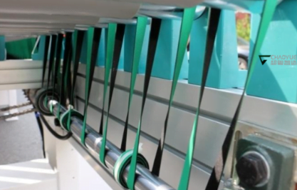 Băng tải này không chỉ giúp vận chuyển tấm gỗ một cách trơn tru mà còn tích hợp các công nghệ tiên tiến, đảm bảo quá trình dán cạnh diễn ra một cách đồng bộ và mượt mà.