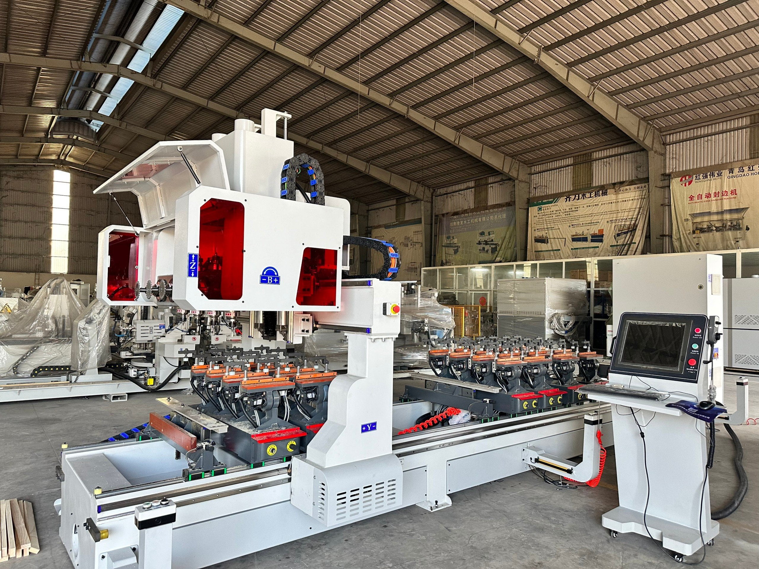 Máy khoan ngang CNC được thiết kế để thực hiện các công việc khoan ngang, đặc biệt hiệu quả trong sản xuất đồ gỗ và nội thất. Máy khoan ngang CNC thường được sử dụng để tạo lỗ hoặc gắn kết các chi tiết với nhau một cách chính xác và nhanh chóng.