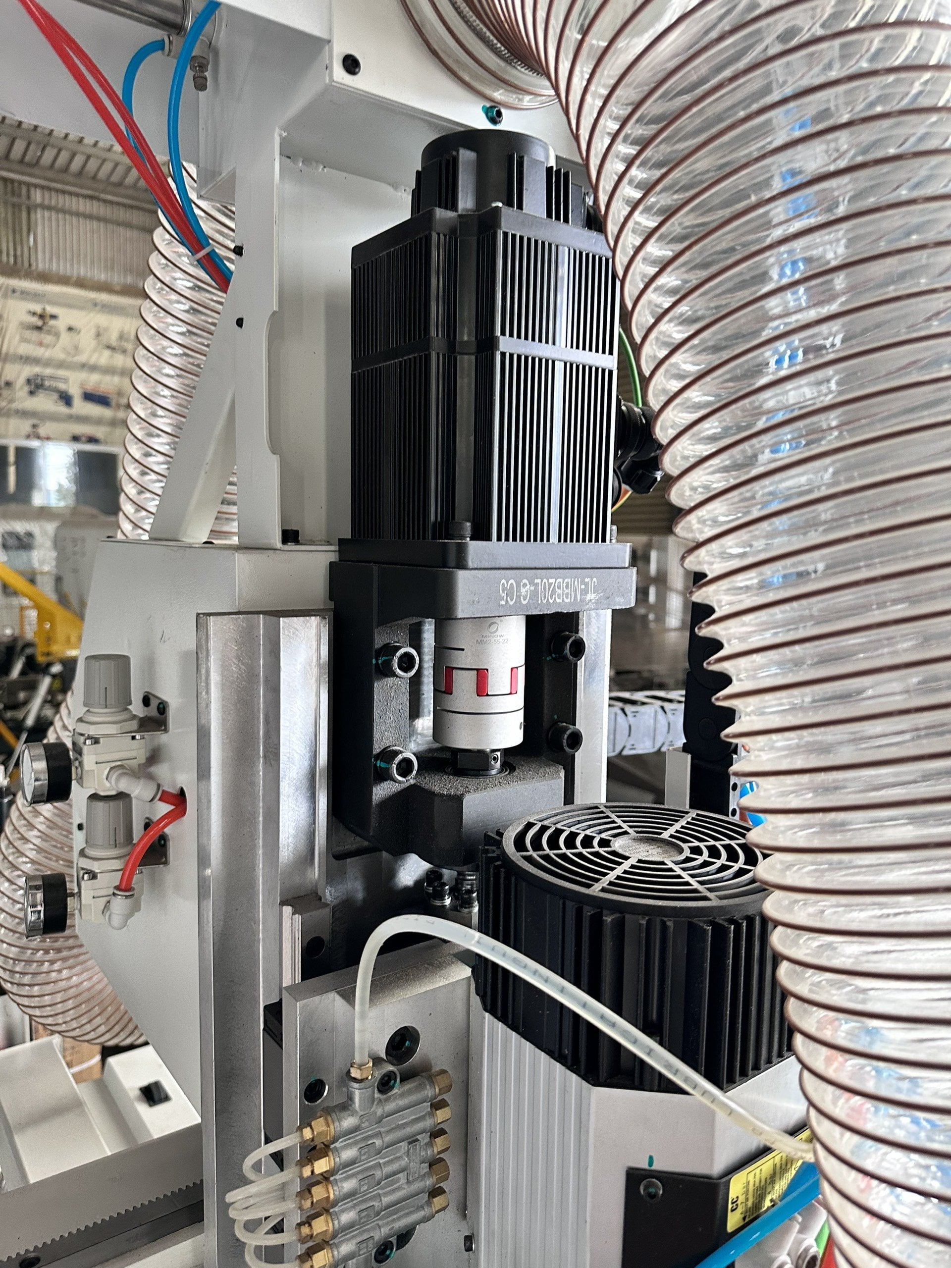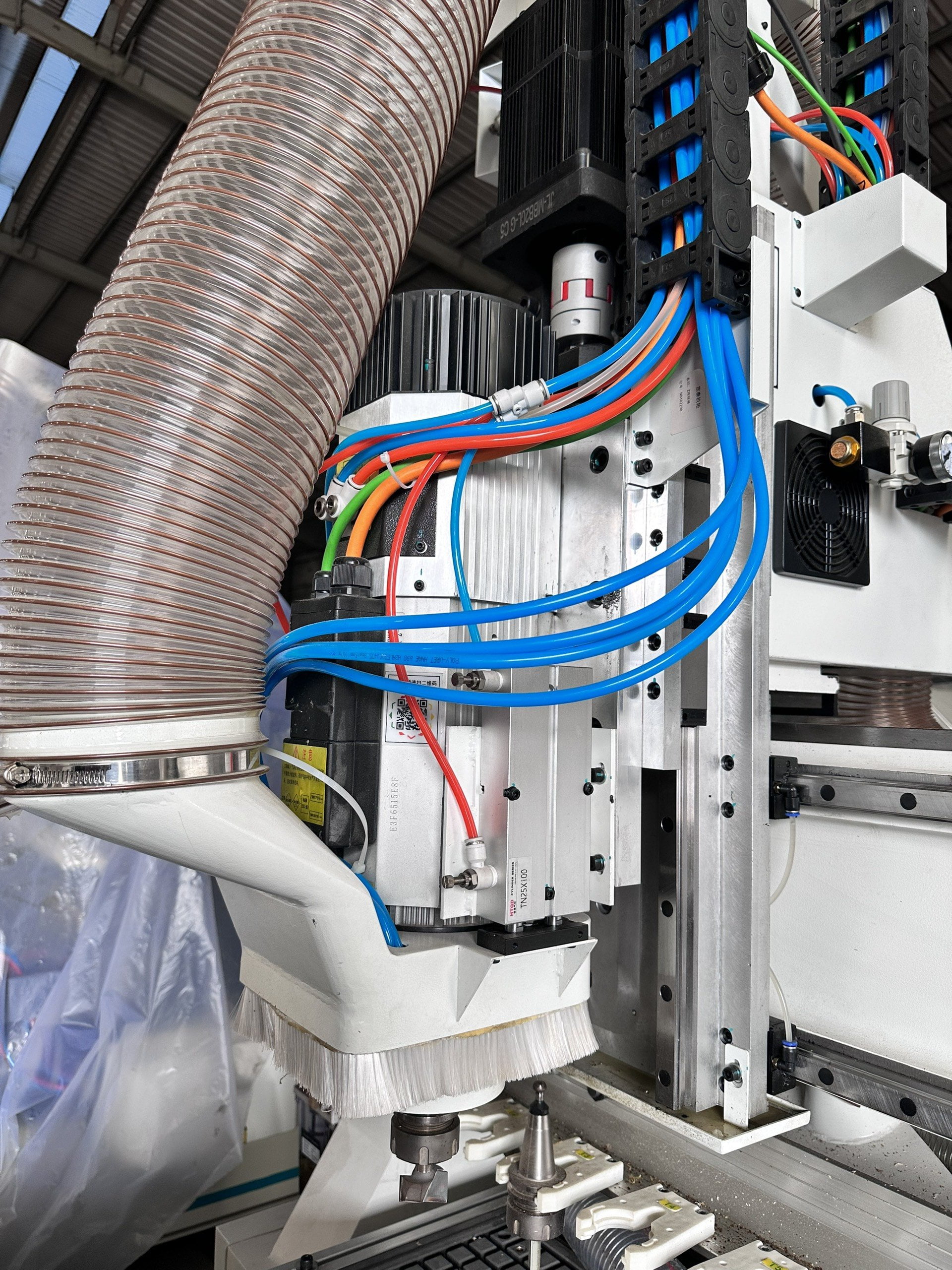 Trục chính CC: 9kw Sử dụng vòng bi gốm chịu nhiệt độ cao, độ chính xác cao và chống mài mòn, có thể gia công cắt phay nặng, phương pháp làm mát bằng không khí lạnh kép bên trong và bên ngoài, cải thiện đáng kể tuổi thọ của trục chính