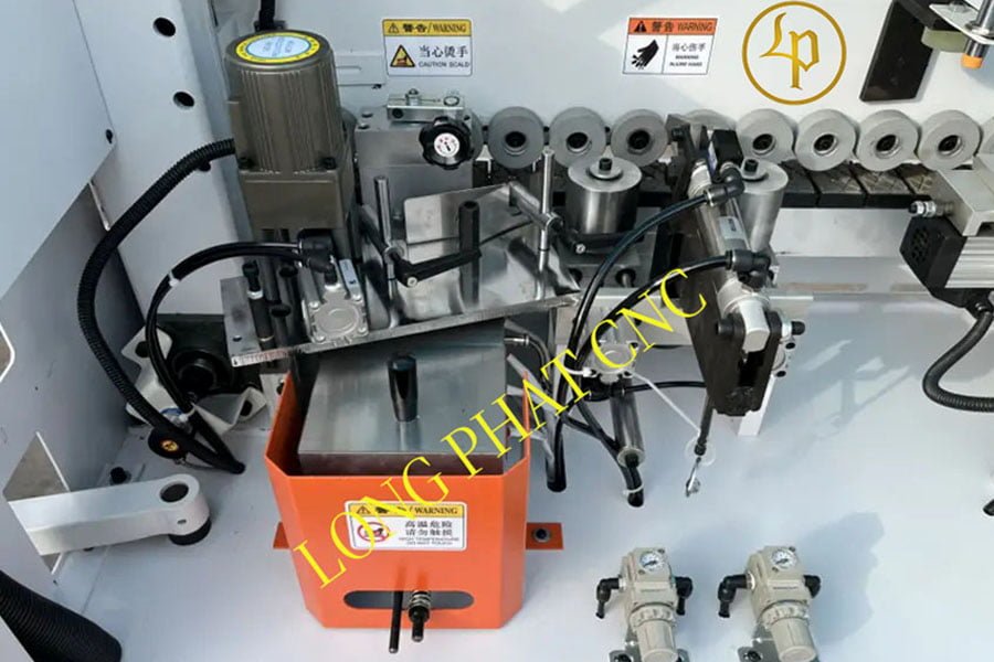 Cấu tạo máy dán cạnh bao gồm khung máy chắc chắn, hệ thống dẫn động mạnh mẽ, và bộ phận dán keo chính xác. Các bộ phận này phối hợp nhịp nhàng để đảm bảo quy trình dán cạnh diễn ra hiệu quả. Bảng điều khiển giúp người vận hành dễ dàng điều chỉnh các thông số kỹ thuật.