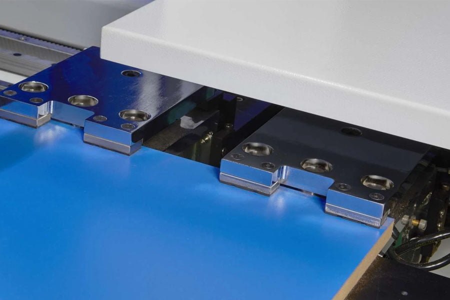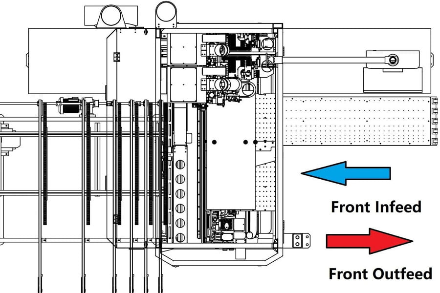 Bàn tiếp liệu phụ trợ áp dụng thiết kế nổi trên không (air floating), ra phôi bằng băng tải. Máy có chế độ linh hoạt để khách hàng lựa chọn: nạp phôi và ra phôi đều phía trước, nạp phôi phía trước và ra phôi phía sau.