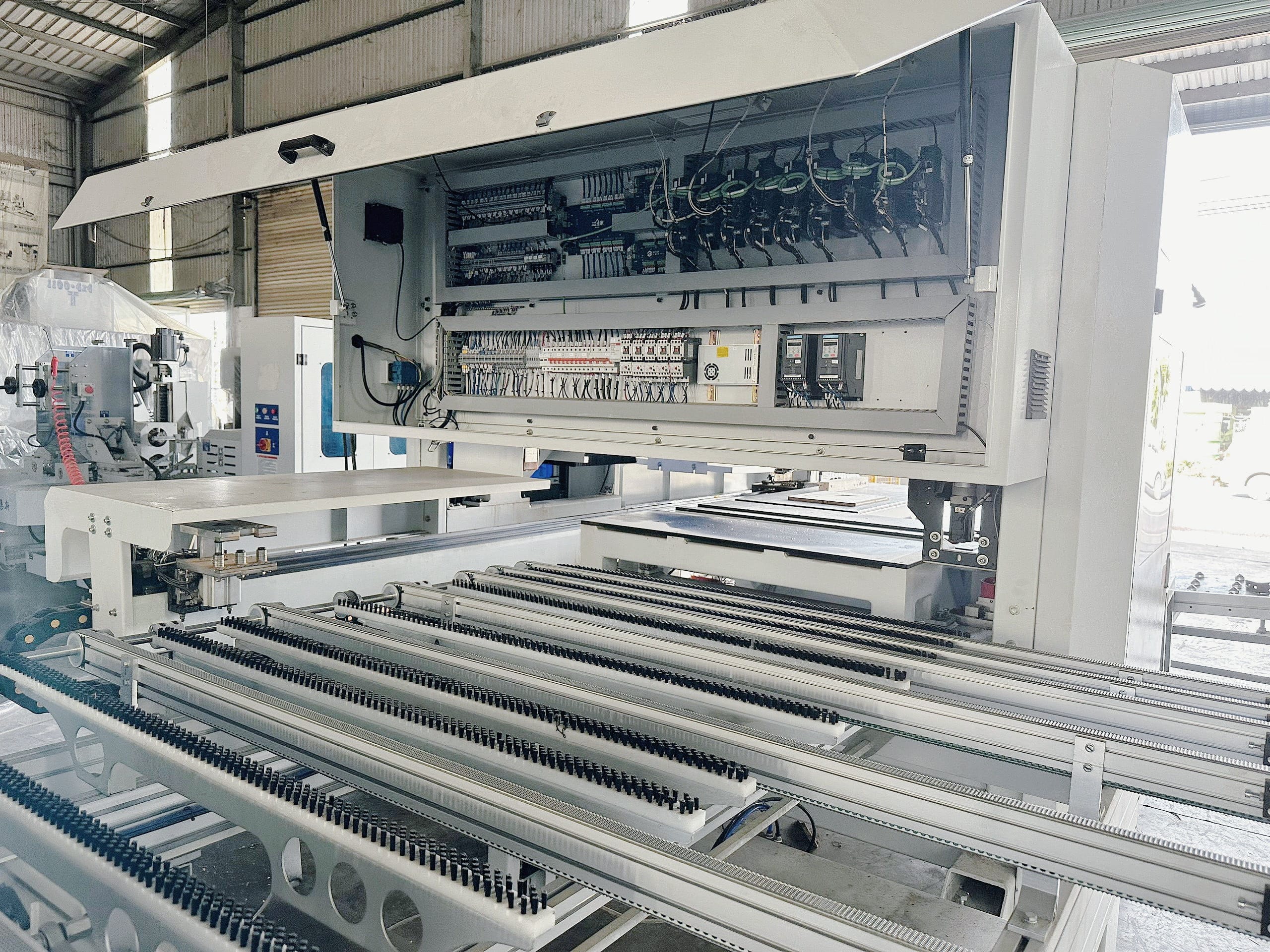 Máy khoan sáu mặt hai đầu là dùng máy khoan CNC 6 mặt Sử dụng hệ thống CNC BECKOFF của Đức, tích hợp với phần mềm CAD/ CAM tự phát triển nhằm phát huy tối đa công năng của máy.